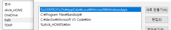 - 환경변수 셋팅(제어판 > 시스템 > 고급시스템 설정 > 고급 탭 > 환경 변수)