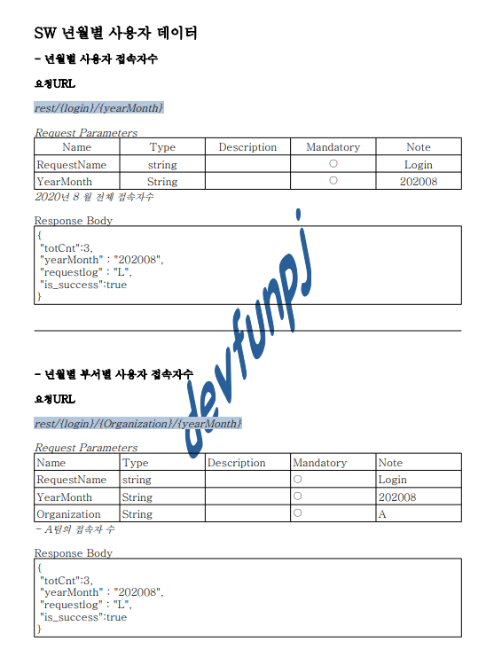요청URL, 요청 Parameter, 응답 바디 입니다.