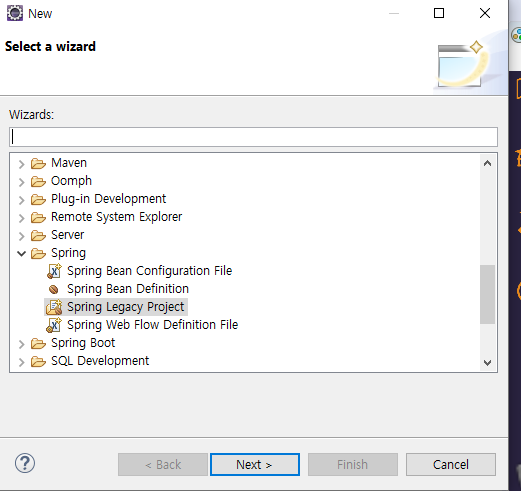 - 스프링 프로젝트를 생성합니다. ( File > New > Other )