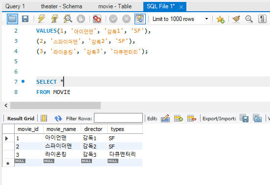 movie라는 table을 만듭니다.
