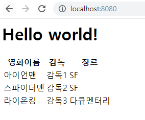 home.jsp에서는 movieList를 받아 c:forEach 문으로 조회된 결과를 뿌려줍니다.