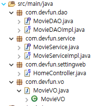 MovieDAO.java에서는 MovieVO를 담고 있는 리스트를 가지는 함수가 있는 인터페이스를 작성합니다.