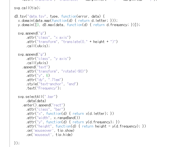 d3.js의 문법을 통해 해당 차트를 그리고 있습니다.